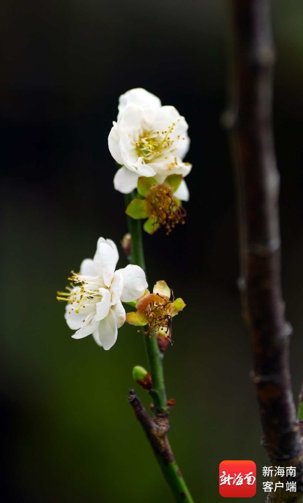 南海网、新海南客户端2月1日消息(记者 汪承贤)近日,琼台师范学院内一株树龄约230年的珍稀古梅进入盛花期,虬曲苍劲的枝头缀满繁花,为校园增添了盎然春意与悠远韵味。