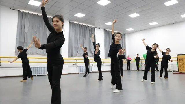 这几日,外面天寒地冻,然而在乌兰察布艺术学校的戏曲班排练室内,却是一派青春蓬勃之景:只见身穿练功服的20多个学生随着老师的口令,一板一眼地练习民间舞蹈动作……